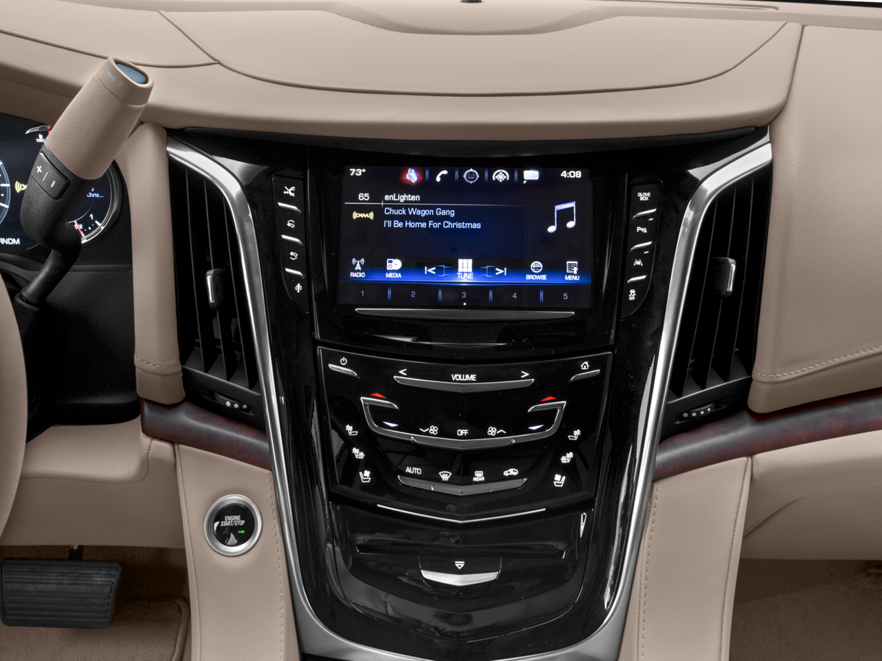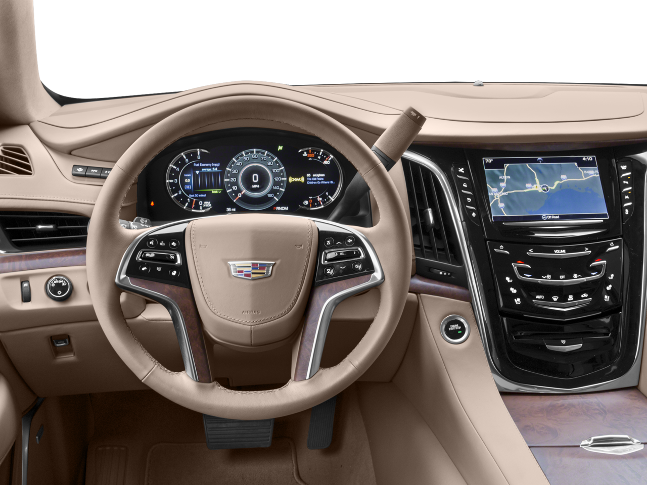 - Cadillac user experience with embedded navigation AM/FM stereo with 8" diagonal color information display featuring touch response, haptic feedback, gesture recognition, Natural Voice Recognition, Phone Integration for Apple CarPlay and Android Auto capability for compatible phone, Collection and Teen Driver. Five USB ports, including one in the articulating storage door/bin and auxiliary audio port