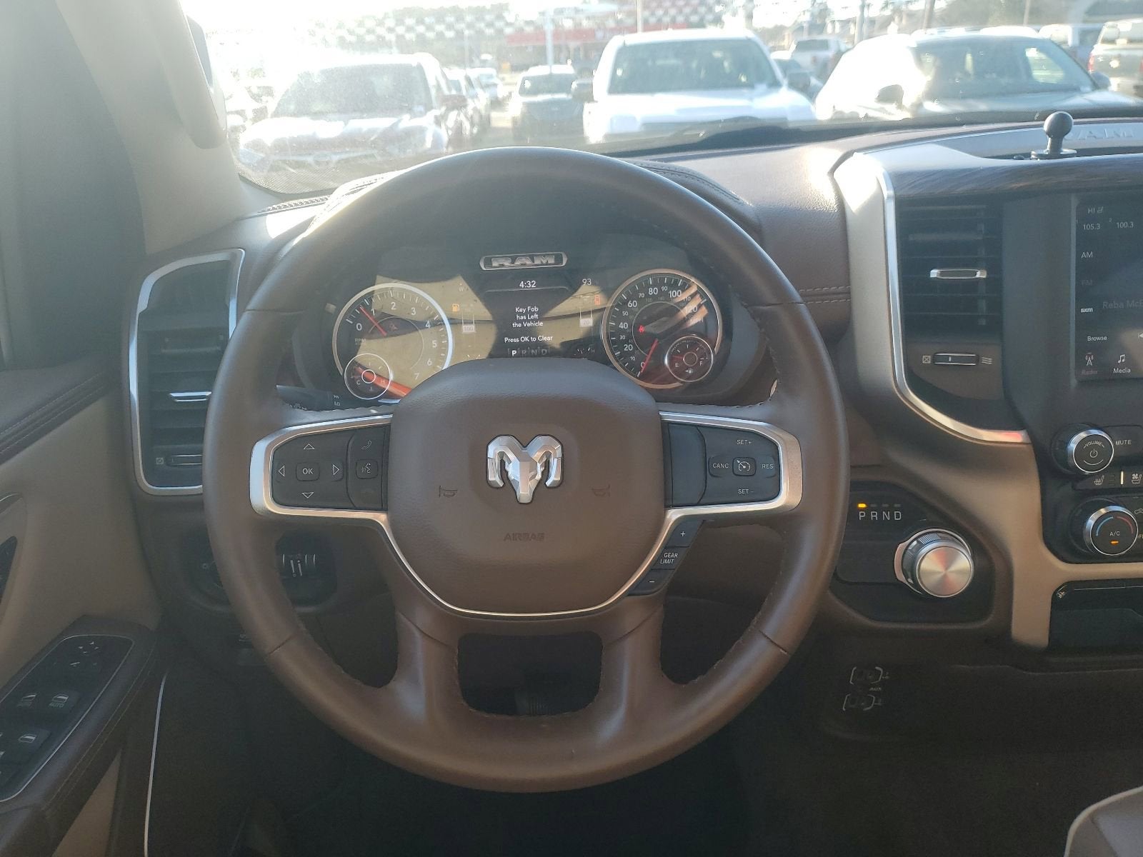 Indulge in the luxurious comfort of the Laramie's premium interior, featuring heated and ventilated front seats, a heated steering wheel, and a spacious 60/40 split-folding rear seat. The Uconnect® 4 infotainment system with an 8.4-inch touchscreen display keeps you connected and entertained, with Apple CarPlay® and Android Auto™ integration for seamless smartphone integration.