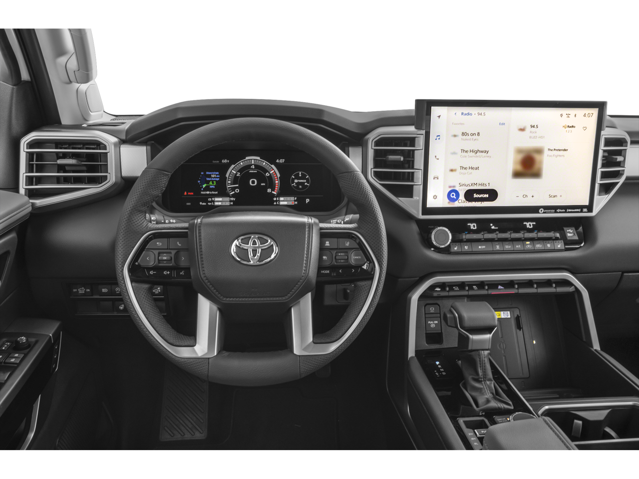 Elevate your driving experience with the premium 20 Alloy Wheels, which not only enhance the Tundra's bold appearance but also provide a smooth and responsive ride. The Leather-Wrapped Steering Wheel and Shift Knob add a touch of sophistication to the cabin, while the Power Adjustable and Ventilated Front Seats ensure a personalized and comfortable journey.