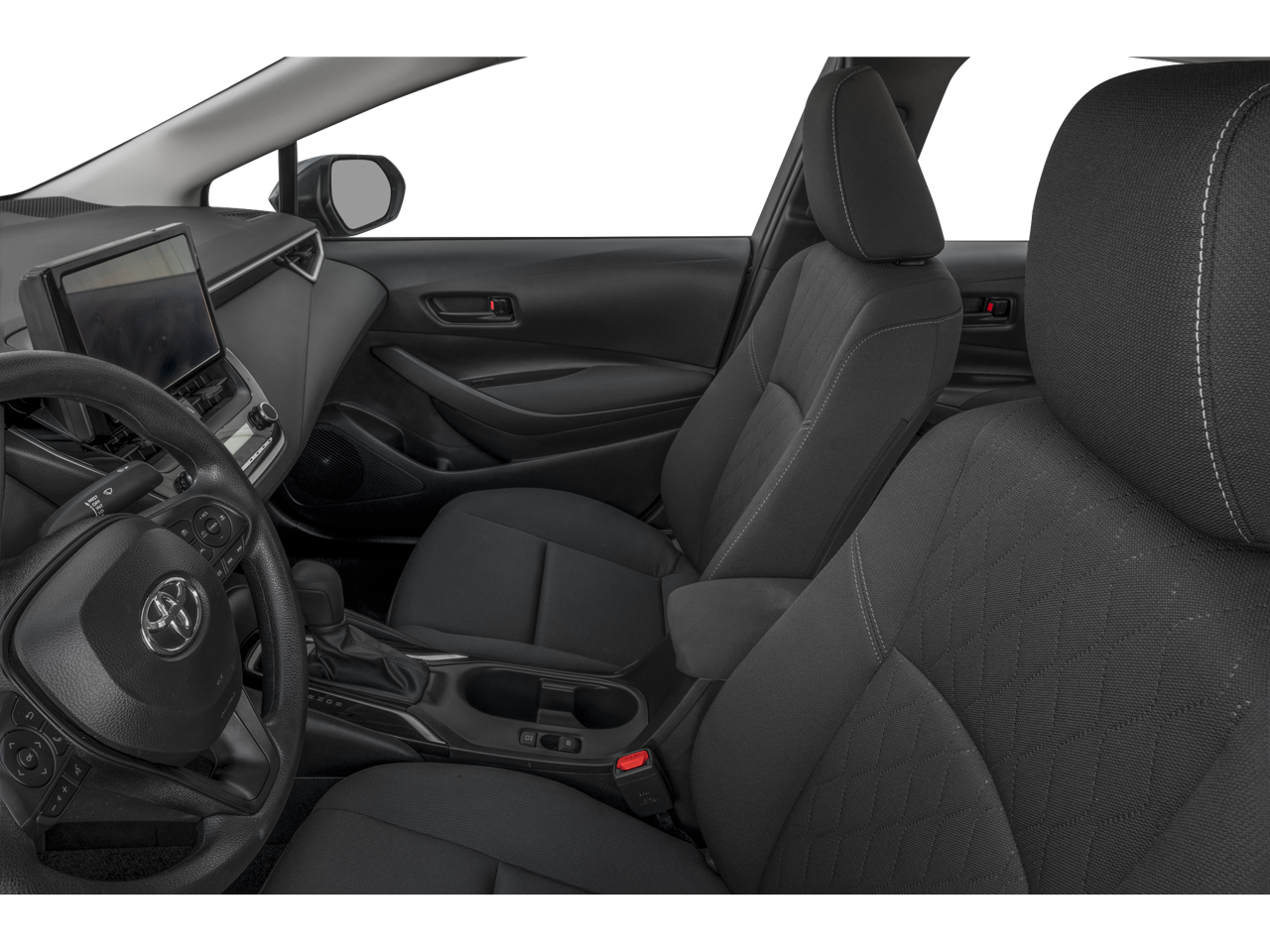 The Corolla's refined interior features comfortable fabric seating, a split-folding rear seat, and ample storage space to accommodate your lifestyle. The sleek, modern exterior boasts a bold front grille, LED headlights, and 16-inch steel wheels with covers, giving the Corolla a confident and sophisticated presence on the road.